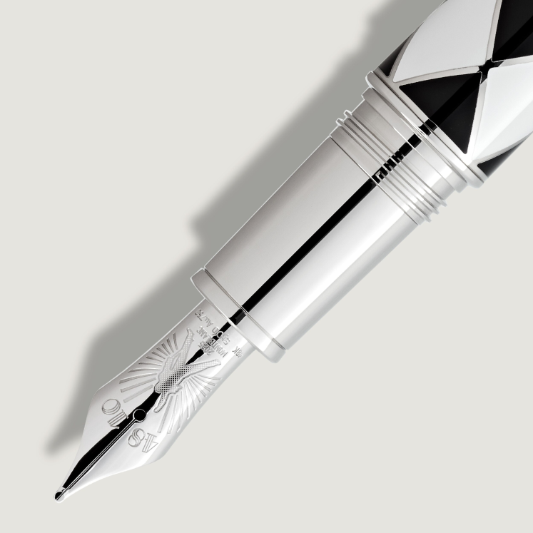 Dans l'histoire passionnante de la musique rock, peu de noms ont brillé avec autant de constance que celui de Queen. Fort d'une carrière de plus de cinq décennies, le groupe est l'un des plus grands succès de tous les temps. Au cours de cette période, Queen a incarné le pouvoir de la créativité musicale et la plupart de leurs chansons sont restées en tête des hit-parades pendant des semaines. Ils ont créé une sorte d'univers musical qui leur est propre, composé d'une combinaison de hard rock, de glam rock, de pop, de funk et d'opéra, faisant voler en éclats les frontières entre les genres. Montblanc dédie son Great Characters Hommage à Queen Limited Edition 1975 à ces icônes du rock, inspiré par l’album A Night At The Opera. Noir et blanc. Aucune autre combinaison de couleurs ne décrit un contraste aussi saisissant et aucune autre ne pourrait mieux symboliser l'étendue de l'univers musical de Queen. Pendant un certain temps, The Black and the White a même été envisagé comme titre de leur deuxième album studio et a été la devise de la spectaculaire fête d'anniversaire de Freddie Mercury onze ans plus tard. Le Limited Edition 1975 apparaît également sous cette forme contrastée. Le quatrième album studio du groupe a toutefois surpassé tout ce qui avait été fait auparavant et est considéré comme l'album à la production la plus élaborée du XXe siècle. Les quatre artistes qui y ont participé sont entrés dans l'histoire : Freddie Mercury, le charismatique chanteur dont la voix s'étend sur plusieurs octaves et est caractérisée par un riche vibrato ; Brian May, le guitariste virtuose et son incomparable son de guitare électrique ; John Deacon, le bassiste hautement créatif ; et Roger Taylor, le cœur rythmique du groupe. En hommage à ces quatre musiciens exceptionnels, leurs portraits stylisés sont immortalisés sur le capuchon noir de l'instrument d'écriture, inspiré des pochettes emblématiques des albums Queen II et Hot Space. L'album A Night at the Opera, et en particulier son morceau phare Bohemian Rhapsody, illustre le rêve de Freddie Mercury de créer un album aux proportions épiques. L'arrangement extravagant de six minutes du single combine des ballades au piano, de l'opéra et du rock, entrecoupés de couches successives de voix lyriques et de références excentriques à des personnages tels que Galilée ou Scaramouche, une figure de la Commedia dell'Arte. Freddie Mercury lui-même, connu pour ses costumes de scène flamboyants, se glissait souvent dans la peau d'un autre personnage de la Commedia dell'Arte, Arlequin. Son célèbre justaucorps moulant à motifs losanges noirs et blancs soulignait son personnage scénique non conventionnel et a inspiré le design rhombique du corps. Cette édition rend également hommage à Brian May et à son incroyable jeu de guitare, qui a joué un rôle si important dans le son de l'album, en donnant au cône platiné son aspect distinctif. Celui-ci rappelle les boutons de réglage du volume et de la tonalité de la célèbre guitare électrique de Brian May. Le nom de l'album est gravé sur l'anneau du cône : A Night at the Opera. L'année de sa sortie, 1975, a inspiré la décision de limiter l'édition à 1975 stylos plume et 1975 rollerballs. La couronne portée par Mercury lors de l'interprétation finale de God Save The Queen a inspiré la silhouette du capuchon de l'édition limitée et constitue en même temps une métaphore du caractère majestueux du groupe et de son héritage musical. L'agrafe platinée est conçue pour ressembler à un pied de micro, en référence à l'une des caractéristiques des performances live de Freddie Mercury.