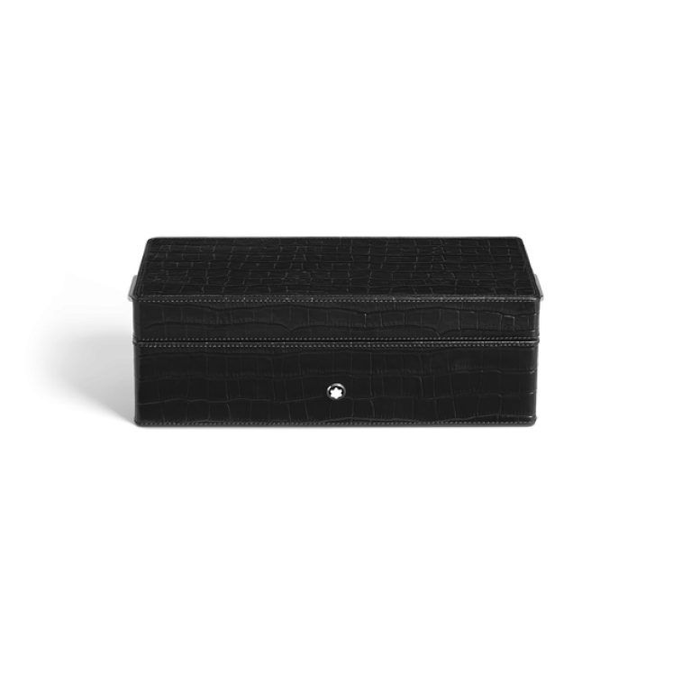 Conçue de manière experte, cette boîte à stylos comporte des emplacements dédiés pour trois instruments d'écriture et de l'encre Montblanc. Associez-la aux accessoires de bureau Montblanc pour une touche raffinée et sophistiquée. Fabriqué en Italie. Dimensions : 260 x 90 x 120 mm.