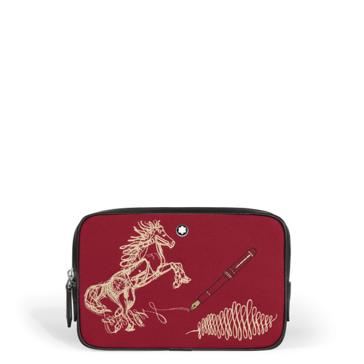 Confectionné en gabardine rouge, ce sac compact et charmant est orné d'une broderie exclusive et de détails élégants en cuir noir contrastant. Rendant hommage à l'année du Cheval, la broderie évoque la fluidité d'un croquis en associant l'esprit de la saison au riche patrimoine de Montblanc dans l'art de l'écriture. À l'intérieur du compartiment principal, découvrez une poche ouverte pratique. Sa bandoulière en cuir réglable et amovible permet de le porter de différentes façons, pour célébrer la nouvelle année avec un style sans effort.