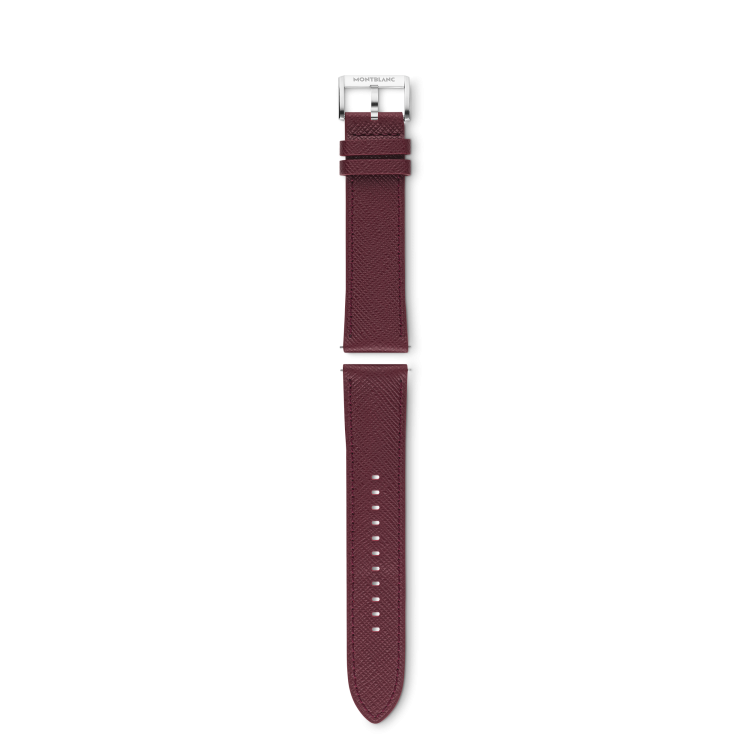 Bracelet en cuir de veau avec impression saffiano bordeaux de 22 mm avec boucle ardillon ajustable en acier inoxydable. Compatible avec toutes les smartwatches Montblanc Summit.